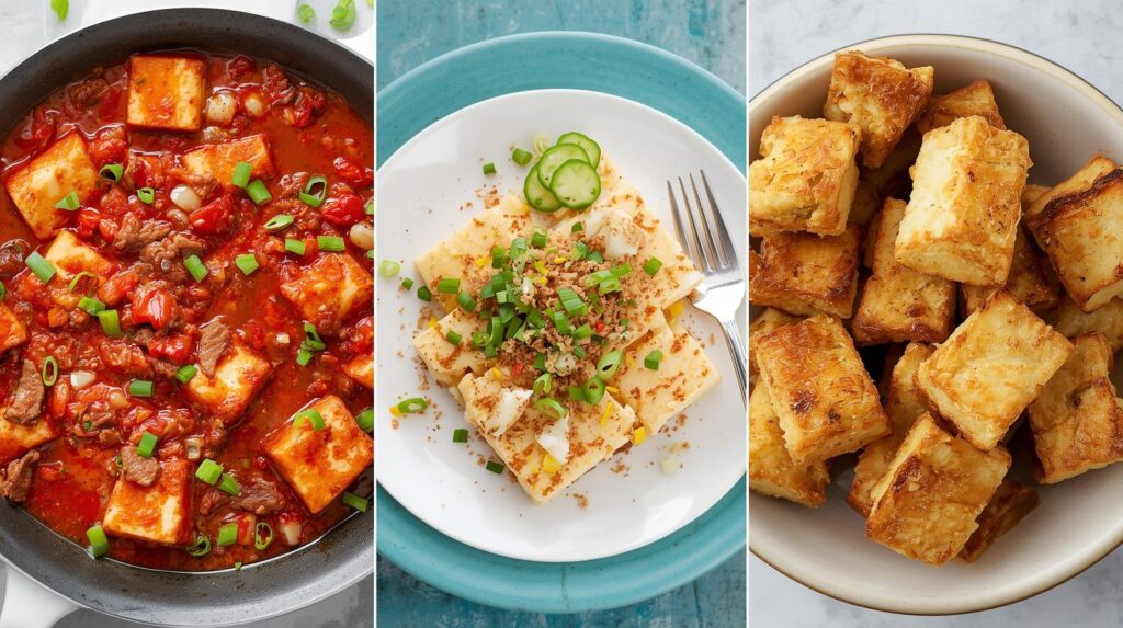 - 豆腐 → 麻婆豆腐/冷奴に薬味たっぷり/揚げ出し豆腐風