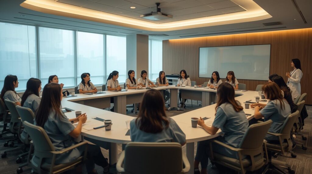- 家族説明の場では、**“横並び+資料を共有”**する配置が、対話をスムーズにする。