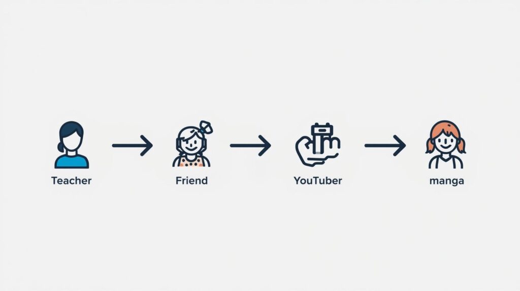 一方で、先生・友達・本・YouTuberなどは、