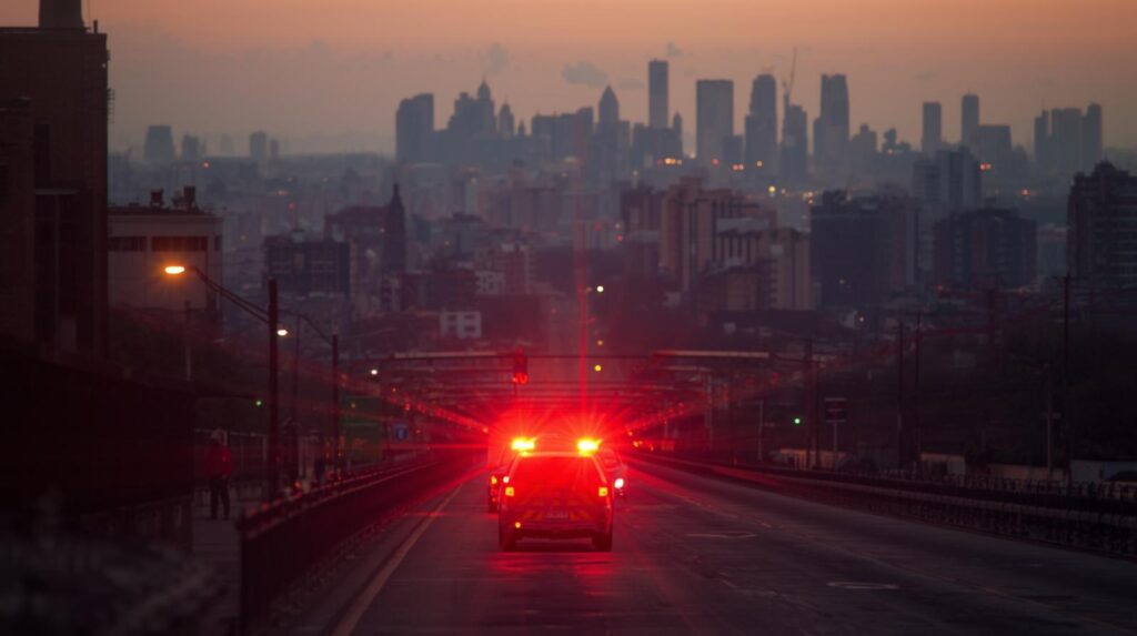 夜明け前、帰りの救急車の中で、